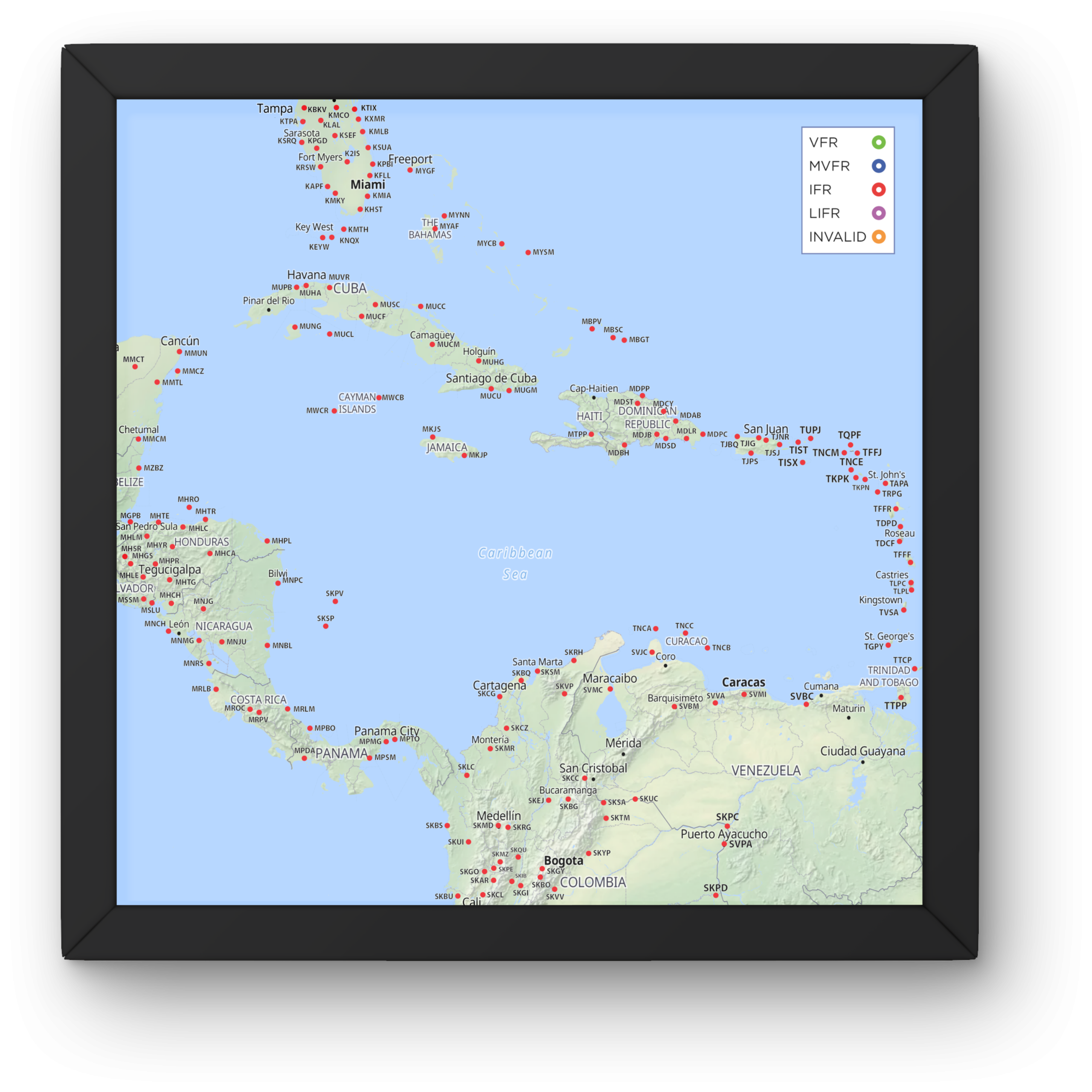 Track real-time aviation weather across the Caribbean, Central America & Northern South America right from your wall or desk!